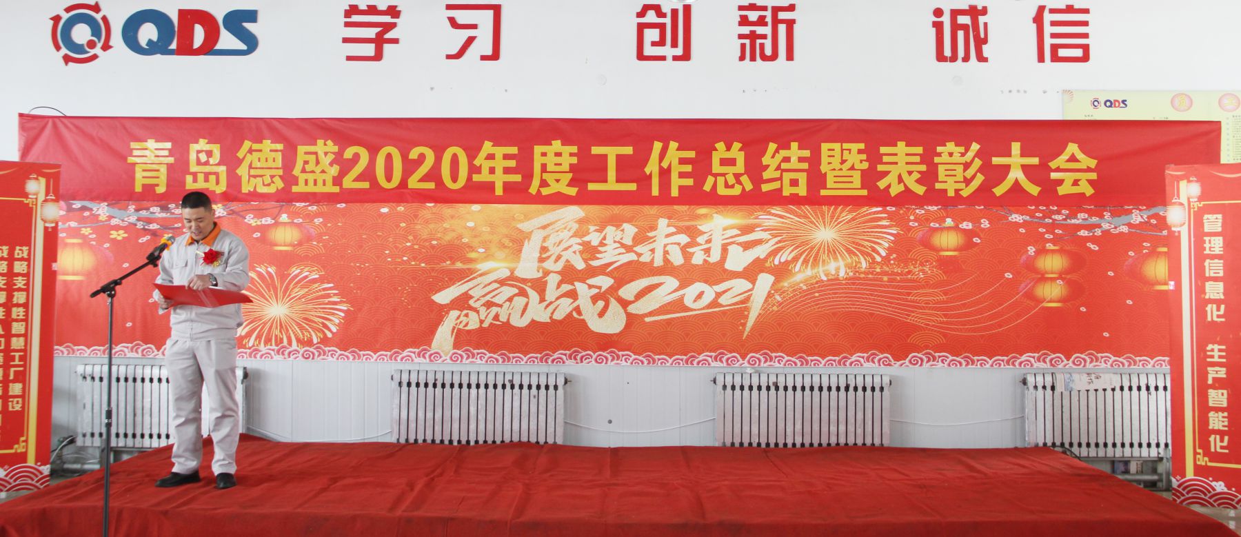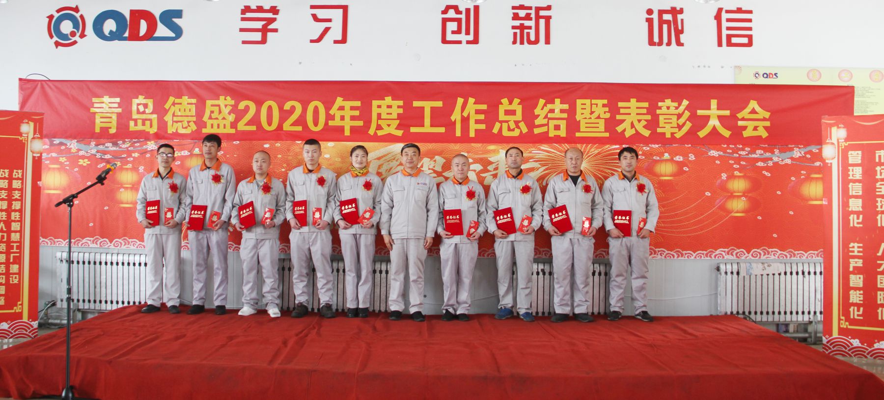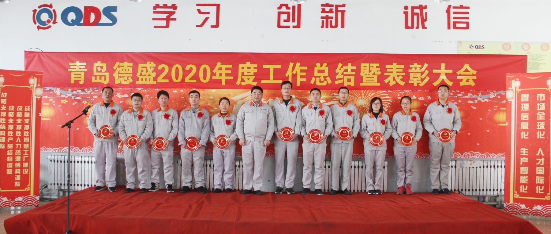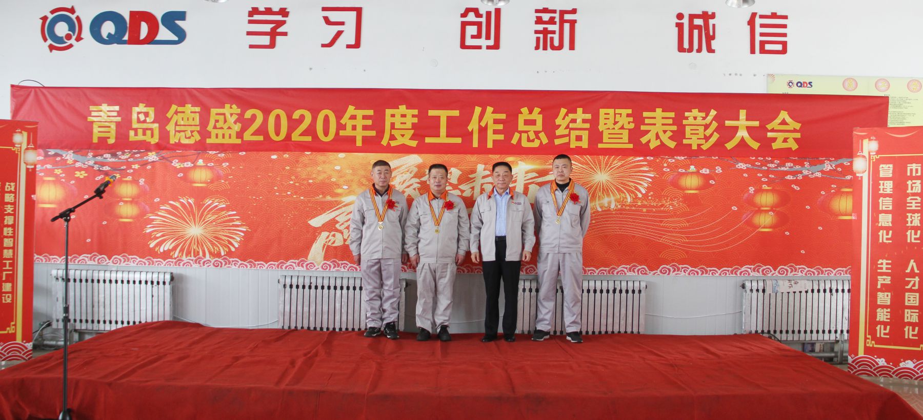大會舉行了隆重的頒獎儀式,為任興鵬等56名“先進生產(chǎn)者”、張曉雷等26名“先進工作者”、李超等6名“優(yōu)秀管理者”、八車間等5個“優(yōu)秀團隊”頒發(fā)榮譽證書;為入職滿十年的王濤遠等11名員工頒發(fā)銅牌、為入職滿三十年的李衛(wèi)東等3名員工頒發(fā)金牌。榮獲獎牌員工代表王濤遠、優(yōu)秀員工代表王偉分別發(fā)言,感謝公司的培養(yǎng)、領(lǐng)導的信任和同事們的支持,他們表示2021年一定立足本職崗位,不斷創(chuàng)新工作思路,努力提高工作能力和水平,力求把各項工作做得更扎實、更到位,為公司的持續(xù)健康發(fā)展做出新的貢獻!