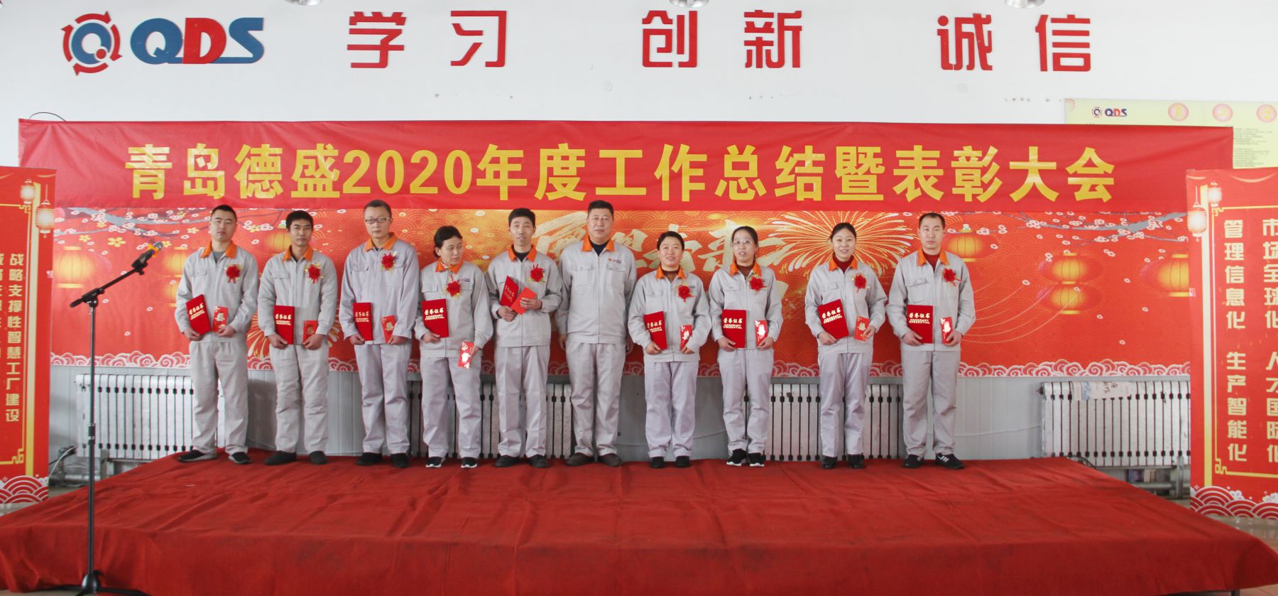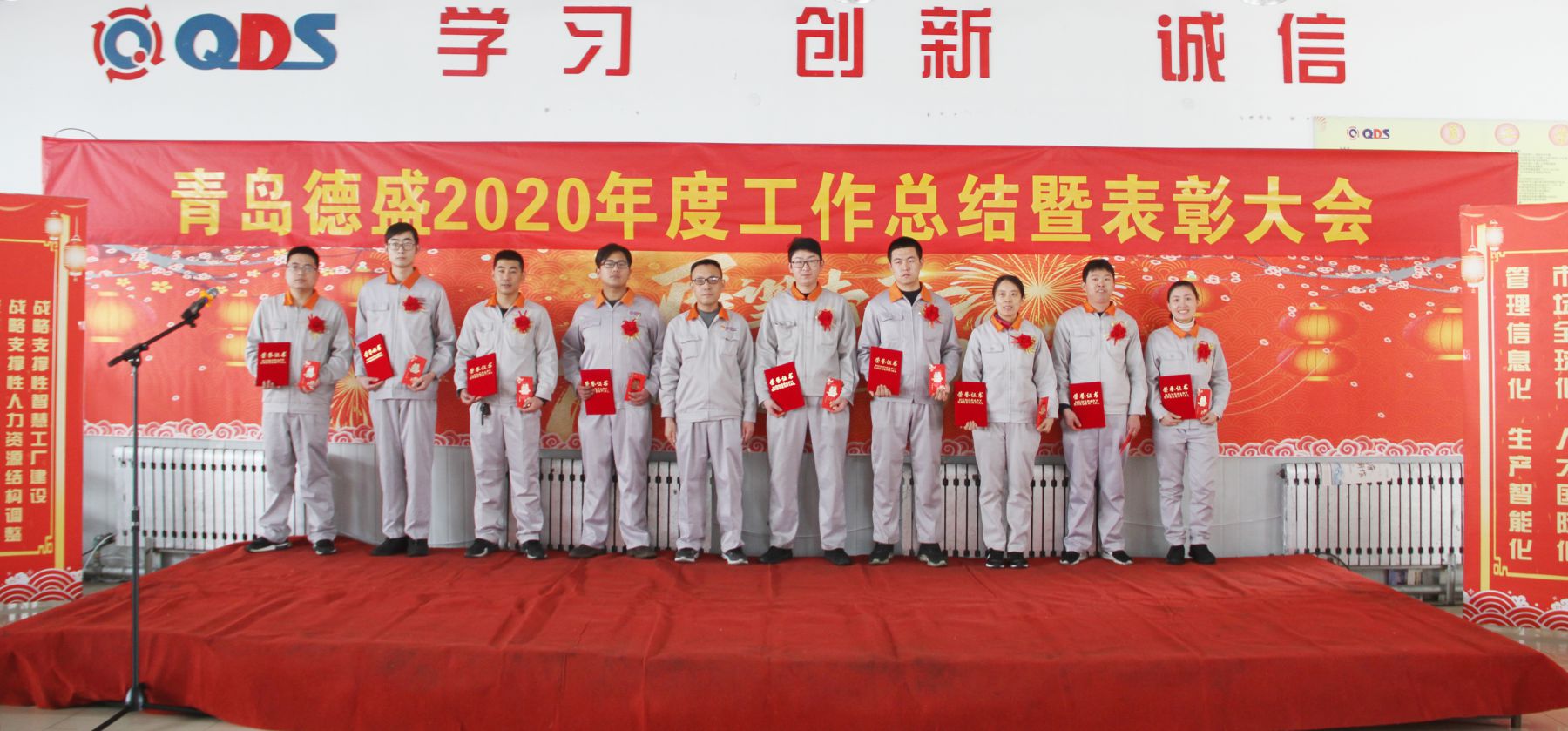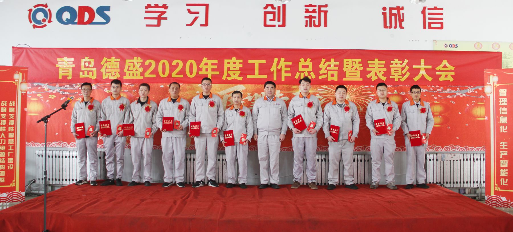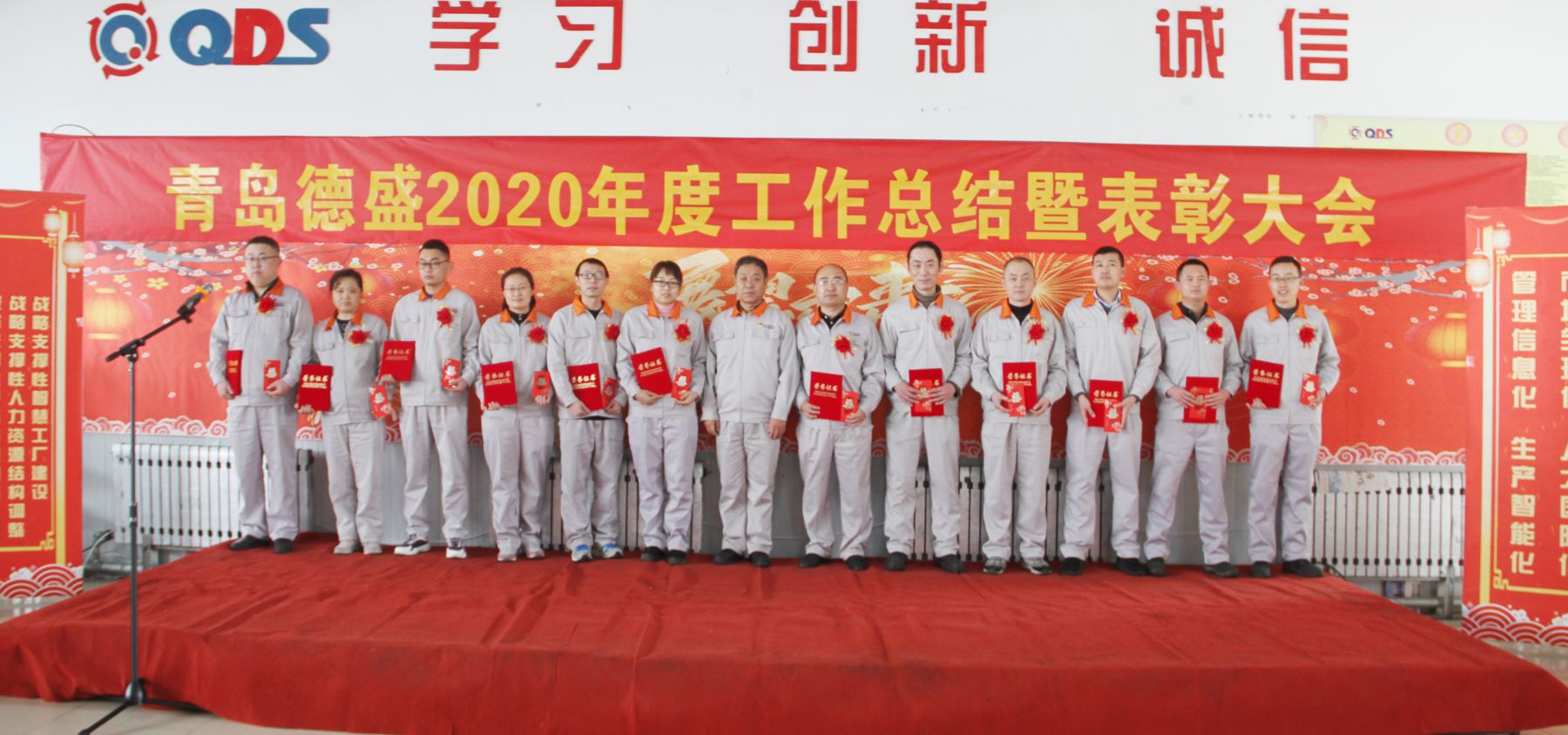 大會舉行了隆重的頒獎儀式,為任興鵬等56名“先進生產(chǎn)者”、張曉雷等26名“先進工作者”、李超等6名“優(yōu)秀管理者”、八車間等5個“優(yōu)秀團隊”頒發(fā)榮譽證書;為入職滿十年的王濤遠等11名員工頒發(fā)銅牌、為入職滿三十年的李衛(wèi)東等3名員工頒發(fā)金牌。榮獲獎牌員工代表王濤遠、優(yōu)秀員工代表王偉分別發(fā)言,感謝公司的培養(yǎng)、領(lǐng)導的信任和同事們的支持,他們表示2021年一定立足本職崗位,不斷創(chuàng)新工作思路,努力提高工作能力和水平,力求把各項工作做得更扎實、更到位,為公司的持續(xù)健康發(fā)展做出新的貢獻!
