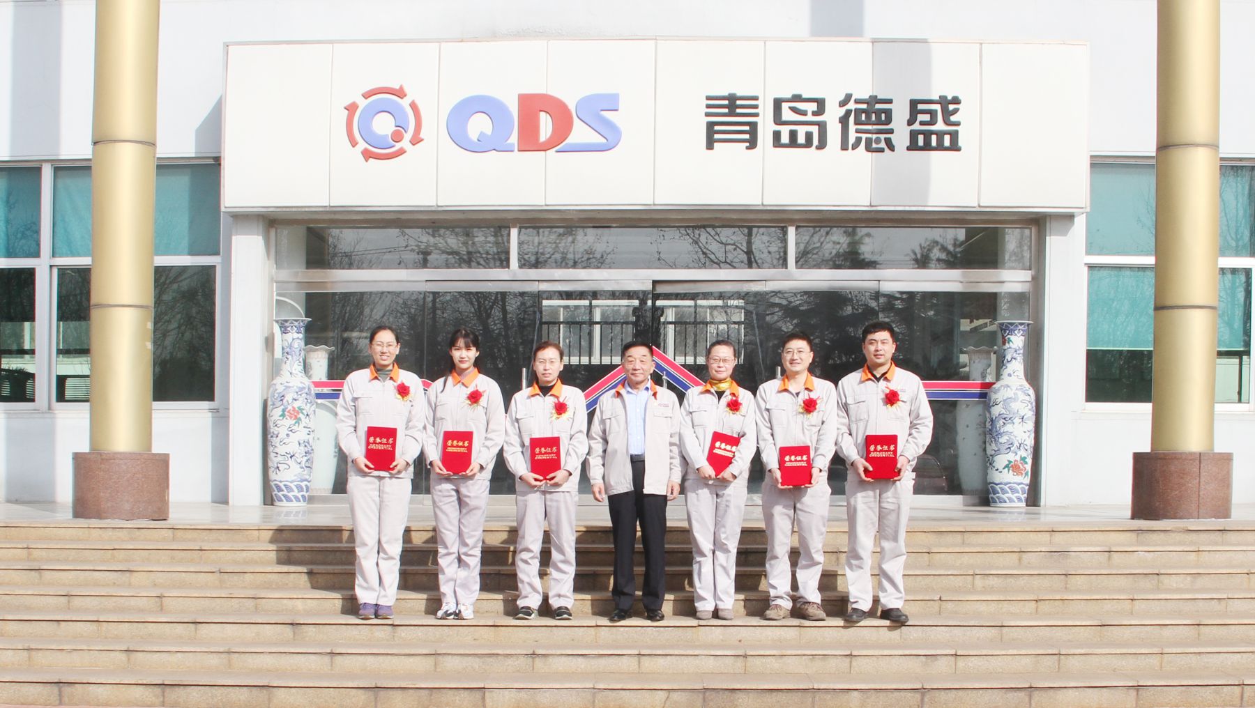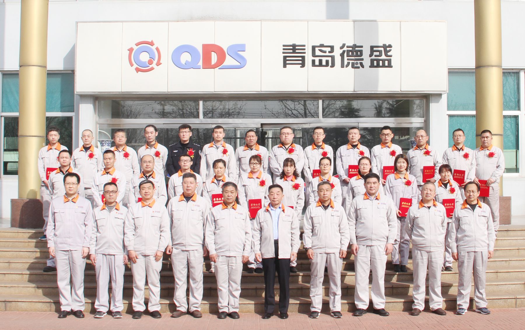 頒獎結(jié)束后,董事長孫佩璋及高管們分別與獲獎員工在辦公樓前進行合影留念。